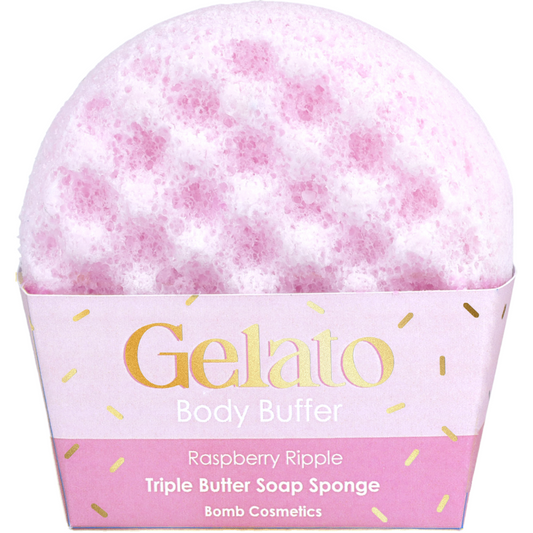 Bomb Cosmetics Raspberry Ripple Triple Butter Gelato Body Buffer Shower Sponge