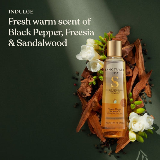 Sanctuary Spa Golden Sandalwood Natural Oils Three-Phase Shower Oil 200ml