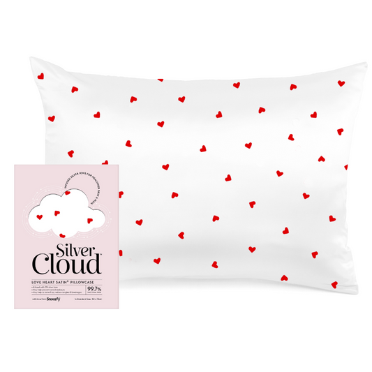 Silver Cloud Satin Pillowcase Heart Print