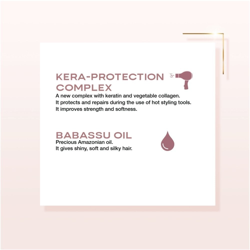 - 1 x Alfaparf Milano Lisse Design Keratin Therapy Maintenance Shampoo (250ml) - a keratin-rich therapy shampoo for every hair type, which gently cleanses and detangles the hair after smoothing and anti-frizz treatments with Keratin. Part of the new and improved range from Alfaparf Milano, this shampoo is perfect for the aftercare of professional Keratin treatments, promising stronger, protected and exceptionally shiny hair that is easily combable. With continued use, hair is smooth, tamed and defined. This shampoo is enriched with Kera-Protection Complex, a Keratin and Vegetable Collagen complex that protects hair during thermal styling, protecting, and repairing damaged hair to improve overall strength and softness. The heat-activated complex forms a protective film on the hair, an essential feature during heated styling, and prolongs the cosmetics results obtained with professional smoothing treatments with Keratin. Each product from the Keratin Lisse range allows you to indulge your senses with pleasant and exotic scents. Opening with top notes of Vanilla, Pink Berries, Rose of Grasse, Tonka Bean and the buds of Brazilian Oranges, the fragrance dives into a pleasing heart Heliotrope, Persian Jasmine and Black Pepper before settling on a bed of Wild Rose, Coconut and sweet, sugary notes. Free from sulphates, paraffine and mineral oils. Cruelty-free & vegan-friendly.