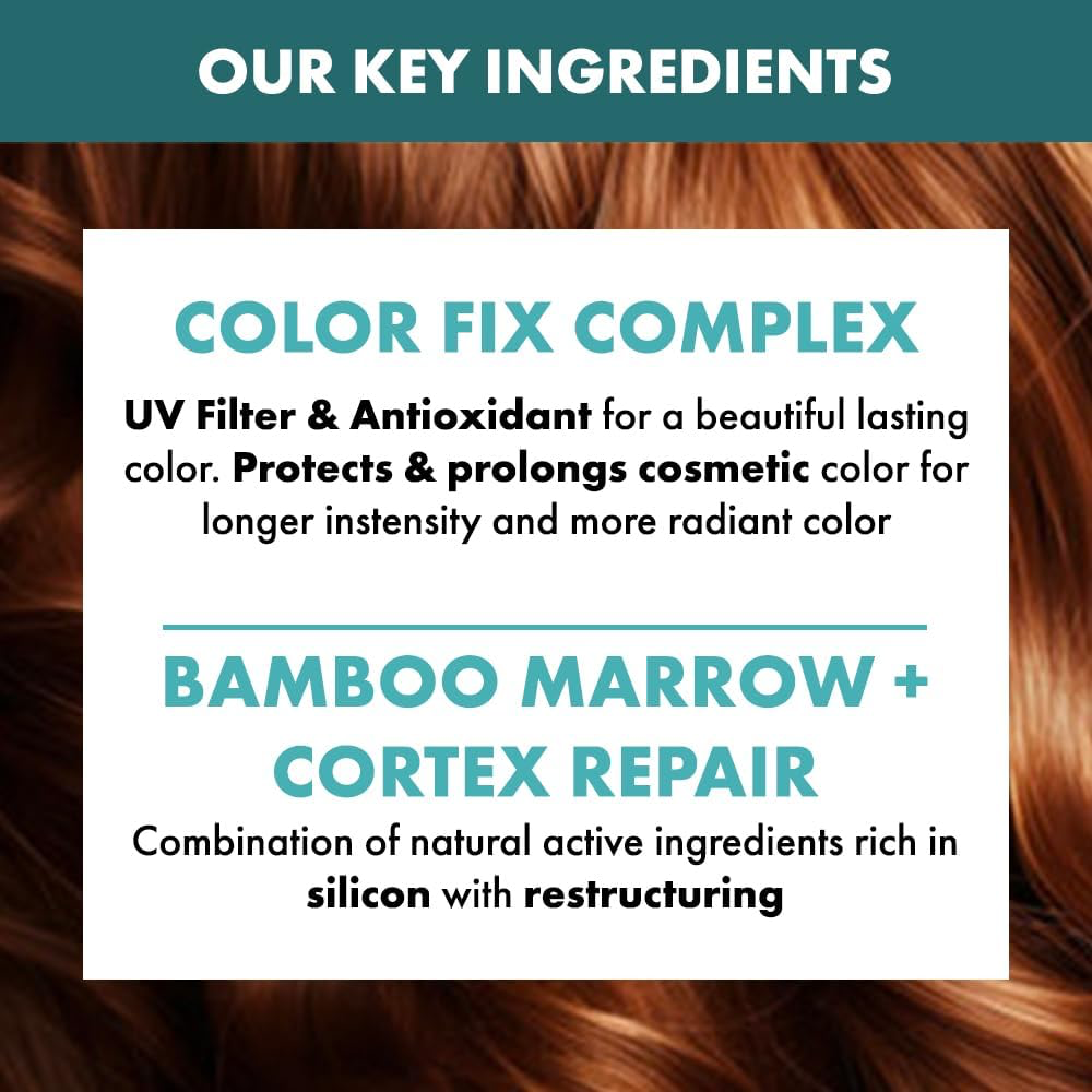 Free from sulphate and harmful ingredients, it combines Bamboo Marrow, rich in Silica for strength and elasticity, with Linseed Extract, a powerful source of fatty acids which smooths the hair fibre for added shine. Adding moisture to the hair, it also preserves up to 91% of colour intensity after 9 washes. The hair appears noticeably stronger and feels softer. Cruelty-free & vegan-friendly.