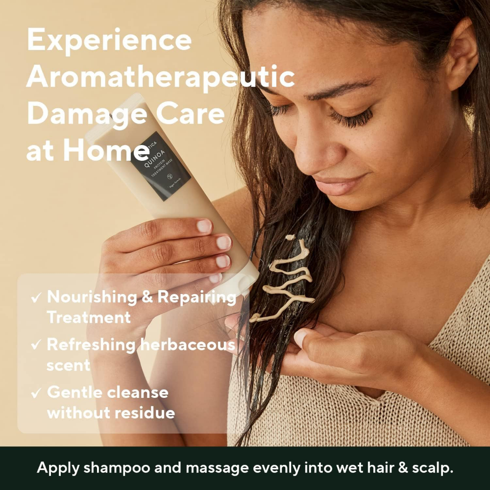 Aromatica Quinoa Protein Treatment Mask (160ml) is an intensive restorative mask formulated to repair and revitalise dry, brittle and heat-damaged hair by replenishing the Cell Membrane Complex (CMC) - a vital structure often depleted through regular heat styling and chemical treatments. Enriched with a nutrient-rich blend of Quinoa and Oat extracts, this deeply conditioning treatment delivers a concentrated dose of natural moisturising proteins and amino acids that strengthen hair fibres from within and improve elasticity and shine.