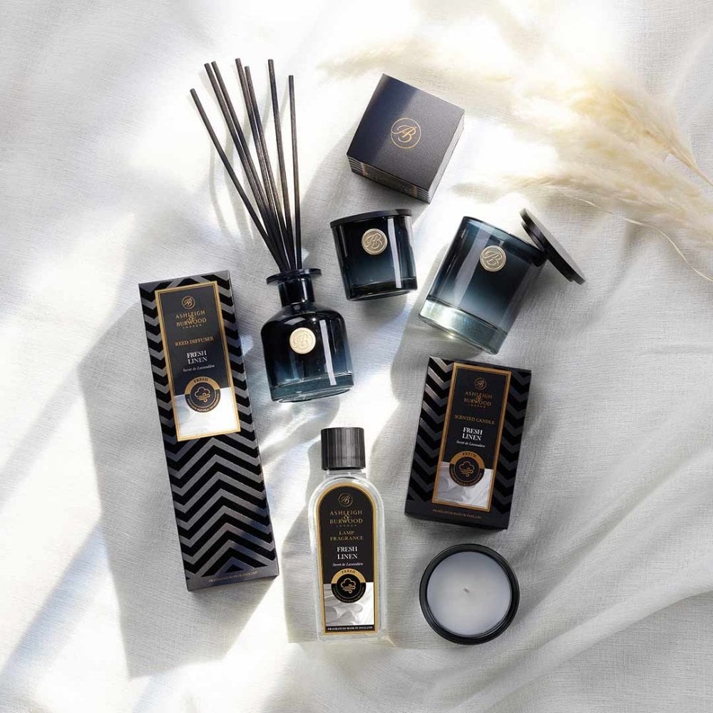 Ashleigh & Burwood's Fresh Linen scent is a light and airy fragrance containing natural extracts of Aqua, Bergamot and Amber, adding subtle freshness and enhanced ambience to your home, and instilling a sensation of well-being. This delightfully fresh, clean and uplifting fragrance evokes the scent of crisp white sheets billowing in a light breeze with additional subtle notes of Aloe, Frangipani, Lavender and Citrus. Cruelty-free & vegan-friendly.