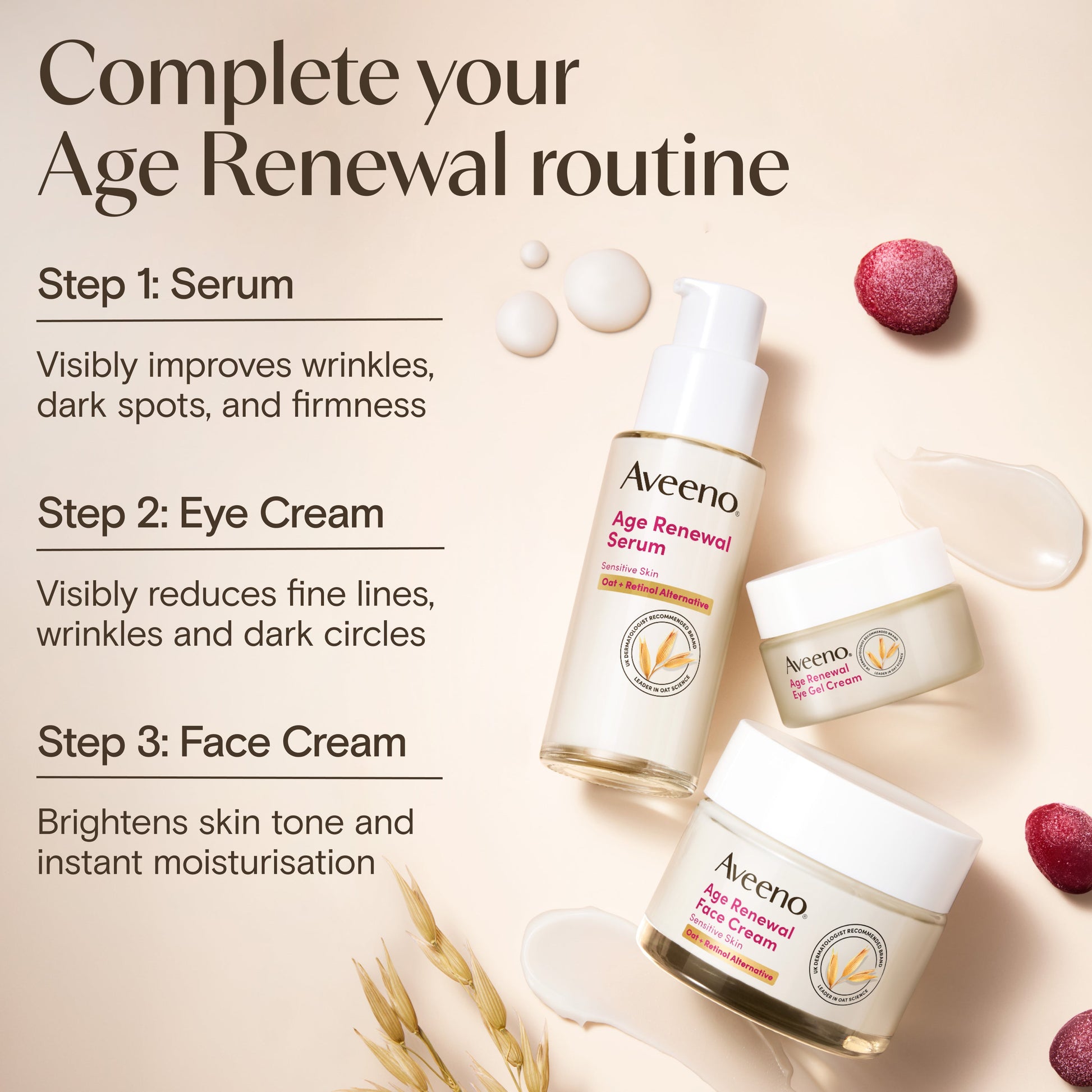 - Can be used alongside Aveeno Calm+ Restore Age Renewal Eye Gel as part of your routine.