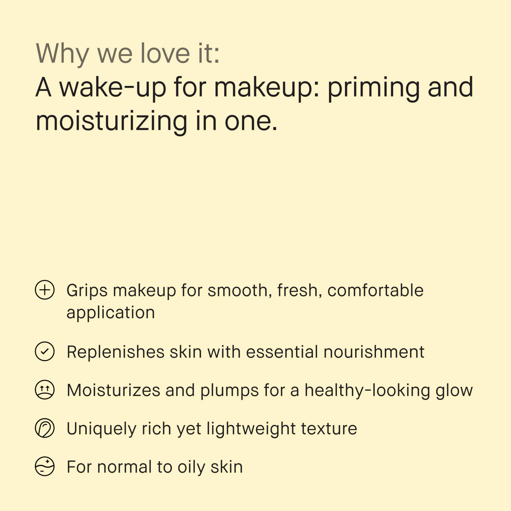 Formulated with Bobbi Brown's signature Nourishing Vitamin Blend, featuring awakening B and C vitamins, replenishing Vitamin E and hydrating Sodium Hyaluronate instantly revitalises and plumps the skin while conditioning it for a healthy-looking, fresh glow. The rich yet breathable texture is infused with Shea Butter and Squalane to provide long-lasting moisture without heaviness, making it ideal for normal to oily skin types. Hyaluronic Acid supports hydration and skin suppleness, creating the perfect canvas for makeup that glides on seamlessly and wears beautifully throughout the day. The energising Grapefruit and Geranium scent offers a refreshing sensory experience, leaving skin subtly scented and fully prepped for flawless makeup.