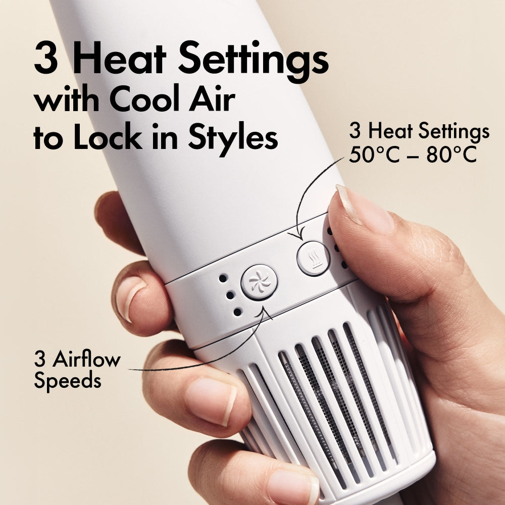 6 detachable ceramic attachments heat up evenly, providing for every conceivable style, effectively adding shine whilst reducing frizz and damage. Use either the Smoothing Dryer or Angled Dryer attachment to roughly dry hair before selecting your chosen ceramic styling attachment - 2 Ceramic Round Brushes and 2 Ceramic Curlers.