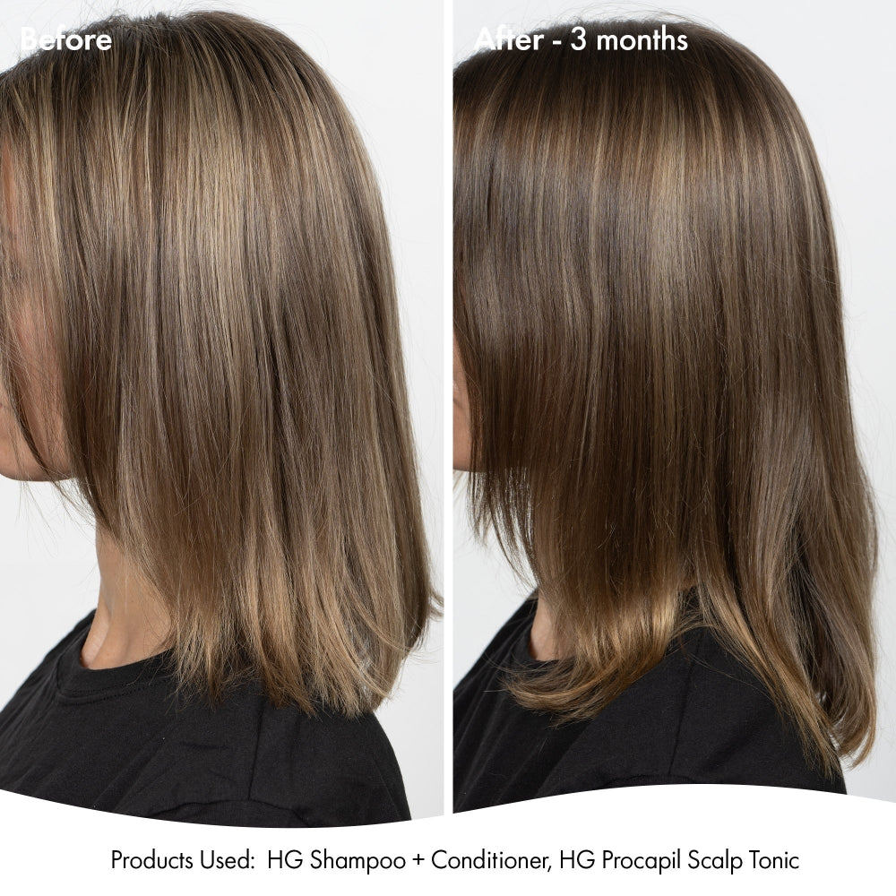 BondiBoost HG Conditioner (300ml) is a lightweight, nourishing and hydrating formula for use on ageing, thinning and weak hair types to help revitalise lacklustre lengths. With 90% of users experiencing longer, fuller, thicker hair after just a month's usage, this phytoactive complex intensively nourishes hair with a combination of vitamins and antioxidants, creating the impression of glossier hair. Weightlessly optimising moisture levels, the plant-powered conditioner detangles from root to tip and smooths down hair cuticles to increase the hair's natural-looking shine.