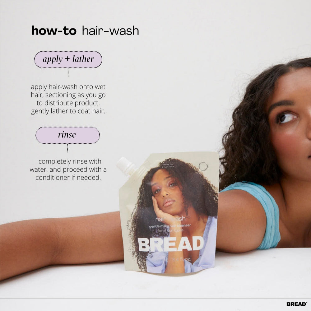 Bread Beauty Gentle Milky Hair-Wash Cleanser (250ml) is a gentle, milky, hybrid hair cleanser which strikes the perfect balance between shampoo and co-wash. Sulphate-free, the curl-defining shampoo softens, moisturises and detangles thick, curly hair without stripping it of moisture.