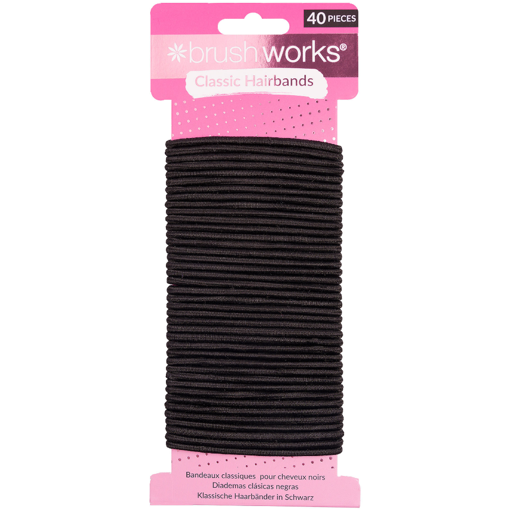 Brushworks Classic Black Hairbands (Pack of 40) are no-snag hairbands designed to keep your hair effortlessly styled with a secure hold & all-day comfort.