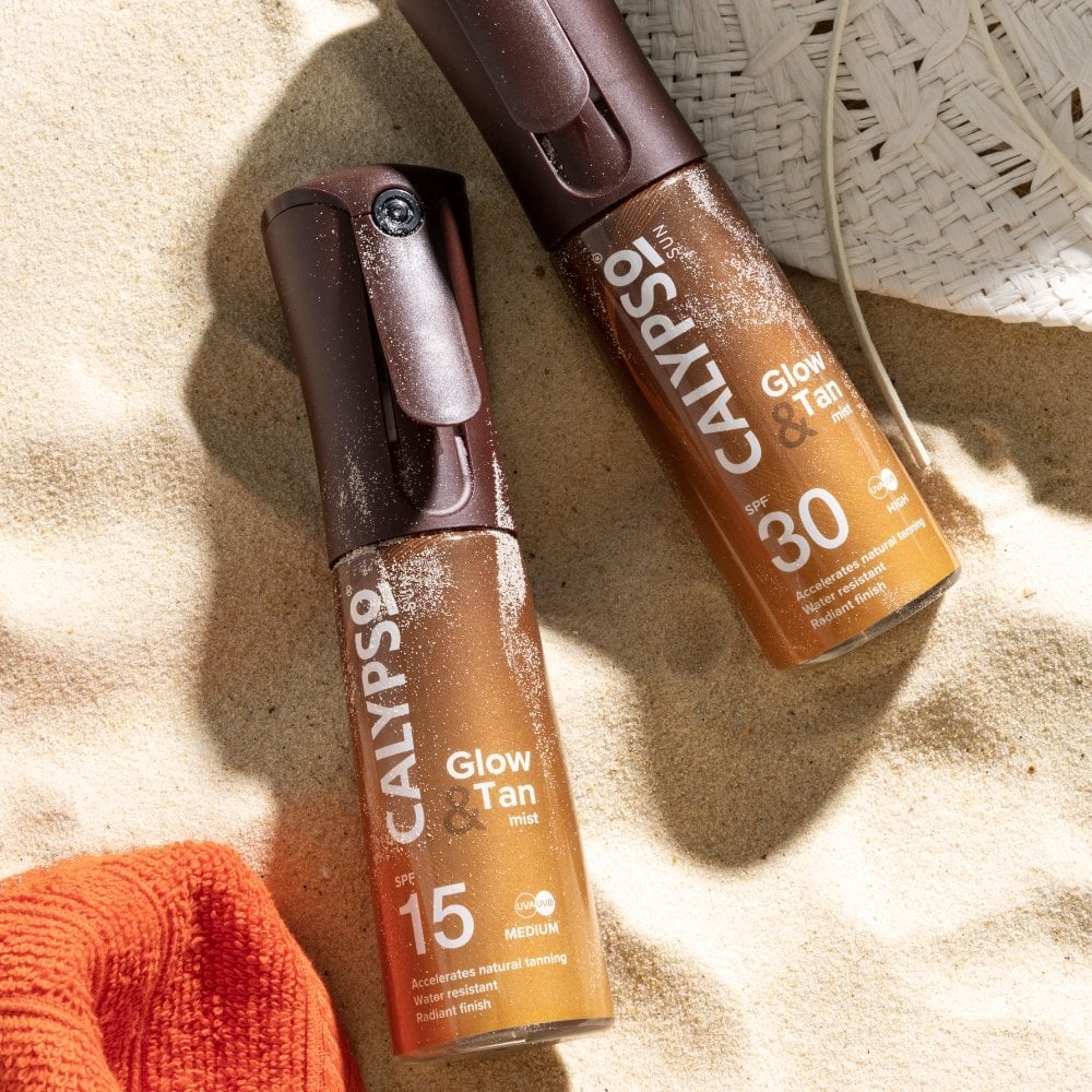 Calypso Glow & Tan Mist Radiant Finish Sunscreen SPF15 (100ml) combines low-level UVA/UVB sun protection with a unique micro mist applicator, providing a radiant, glowing tan finish.