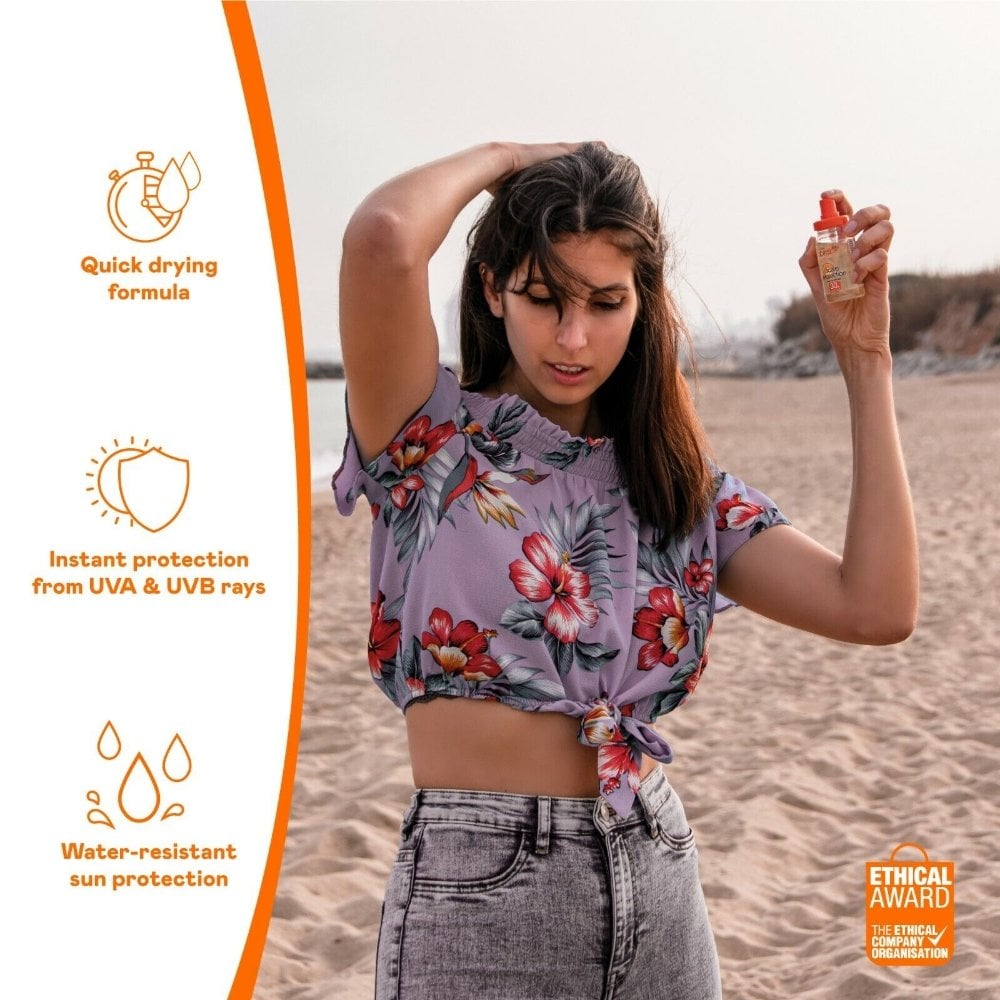 This water-resistant, quick-drying and non-greasy solution provides effective protection for both the scalp and parting. Most of us know to put on sunscreen to protect our skin from sun damage but we tend to forget about our hair. If your hair has prolonged exposure to the sun, it can lead to discolouration, brittle strands, split ends, and frizz. Prevent all of these with just a simple spritz onto the hair and scalp. Cruelty-free & vegan-friendly.