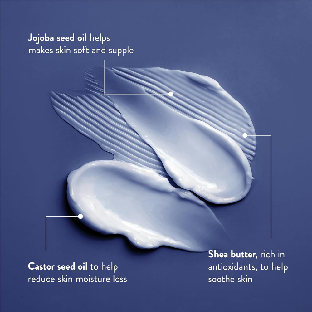 A rich blend of intensely moisturising ingredients, including Jojoba and antioxidant-rich Shea Butter, creates a protective barrier to lock in hydration. Castor Seed Oil helps prevent moisture loss, ensuring that your skin remains soft, supple and nourished. Experience lasting comfort as this cream soothes and restores your skin, leaving it feeling beautifully smooth and healthy. Dermatologically tested. Cruelty-free.