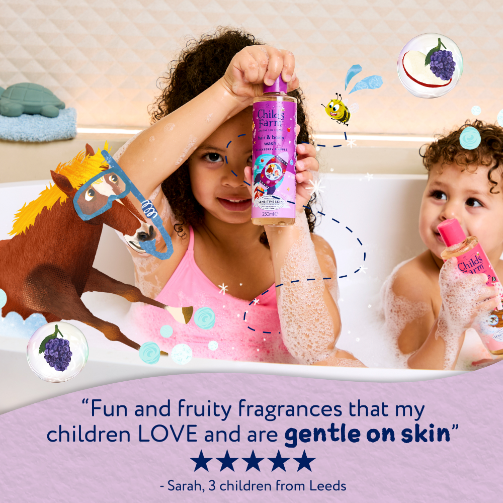 In common with all Childs Farm products, this gentle hair and body wash has been approved by dermatologists and paediatricians as being suitable for all skin types including dry, sensitive and eczema-prone skin. Scented with warming Blackberry and organic Apple, this hair and body wash will leave both your child and your bathroom delightfully fragranced. Whilst caring for delicate skin, Childs Farm are also committed to caring for our planet with sustainably and responsibly sourced packaging and ingredients. Cruelty-free & vegan-friendly.