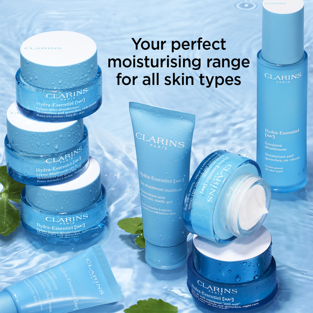Clarins Hydra-Essentiel HA Silky Day Cream for Normal To Dry Skin (50ml) is a hydrating face cream formulated with Hyaluronic Acid to deliver intense moisture and plumping benefits.