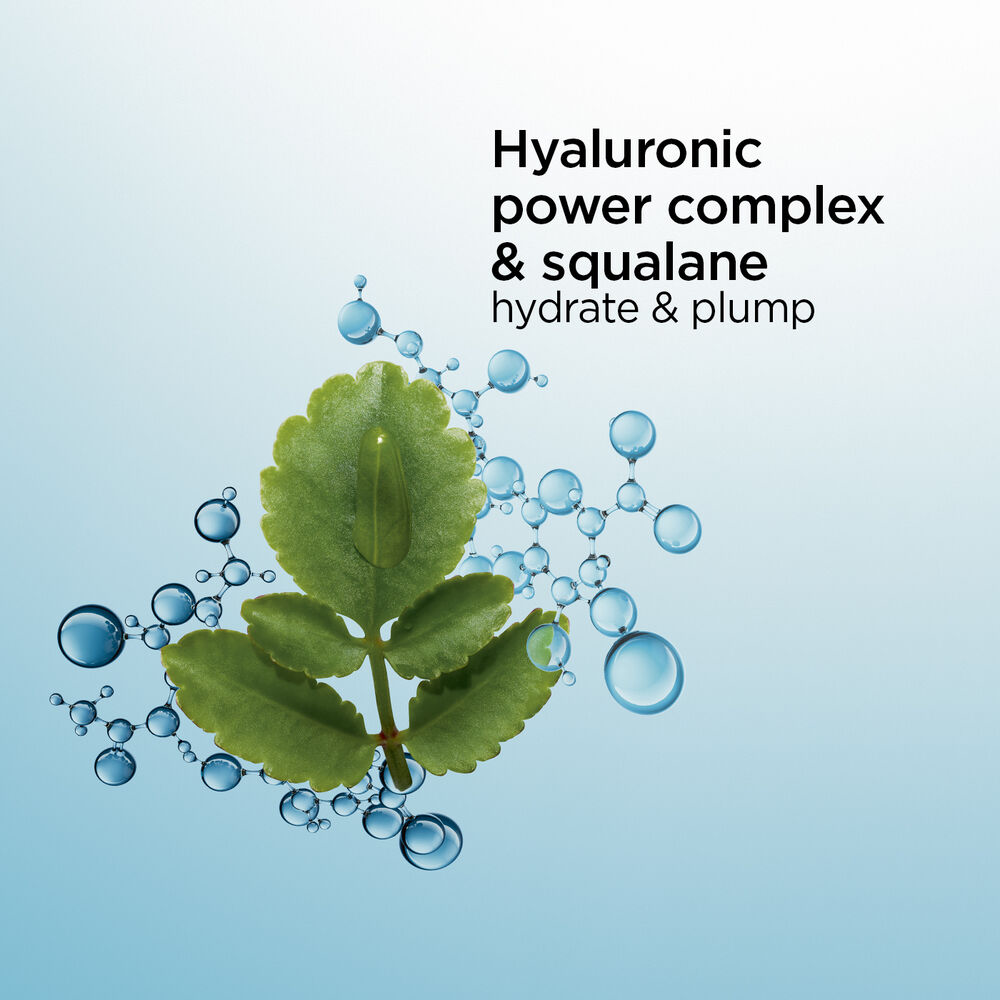 The Hyaluronic Power Complex combines low and high molecular weight Hyaluronic Acids with organic Leaf Of Life Extract to support the skin's natural hydration processes and maintain moisture reserves. Organic Alpine Willow Herb and White Horehound Extract help protect the skin from pollution and environmental stressors, while anti-free radical properties defend against oxidative damage. The fresh, silky texture absorbs easily, leaving skin smooth, luminous and comfortably hydrated throughout the day.