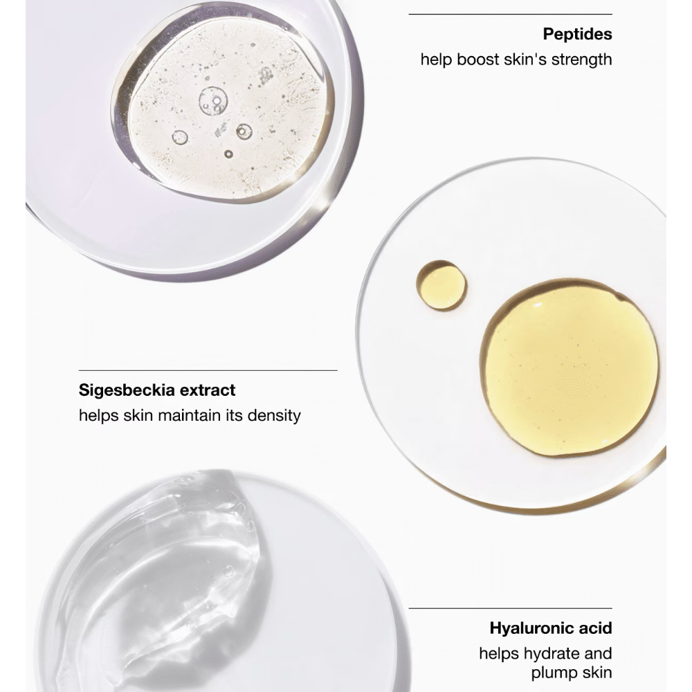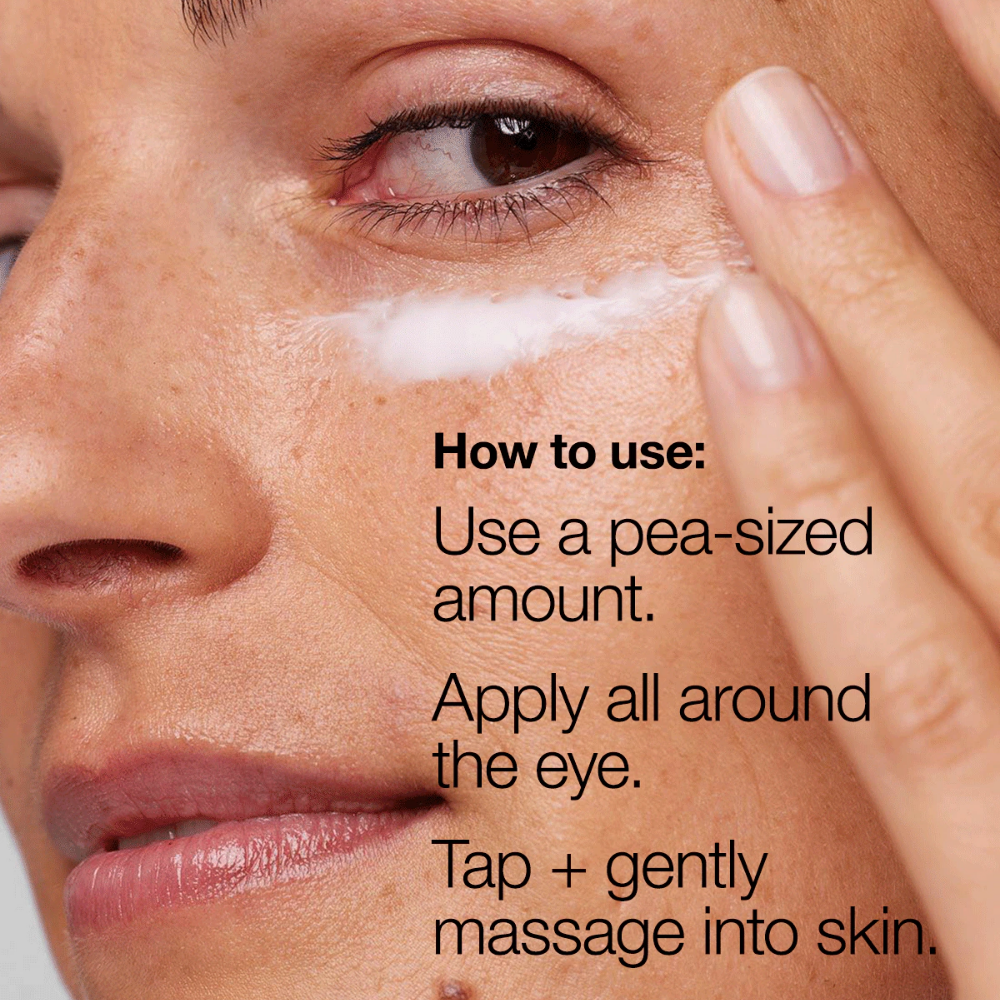 Peptides help reinforce the skin's natural structure, while Hyaluronic Acid delivers deep hydration to smooth and plump fine lines. Sigesbeckia Orientalis Extract contributes to improved skin density and bounce, promoting a firmer, more youthful appearance. The silky, quick-absorbing texture ensures long-lasting comfort, revitalising tired eyes and minimising puffiness. Dermatologist, ophthalmologist and allergy tested. Safe for sensitive skin, sensitive eyes and contact lens wearers. Free from fragrance and oil.