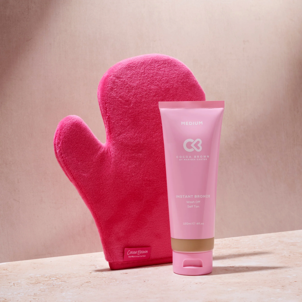 - Apply to Cocoa Brown self-tan mitt and massage evenly into the skin for a healthy, natural glow.