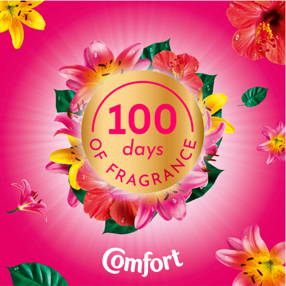 Comfort Perfume Creations Tropical Lily Fabric Conditioner (48 Washes, 1440ml) transforms your laundry into a fragrant escape with up to 100 days of lasting freshness. Featuring Comfort's innovative motion-activated technology, this luxurious formula releases bursts of scent with every movement, wrapping your clothes in the honeyed sweetness of freshly cut Tropical Lilies, evoking the vibrant essence of a lush paradise.