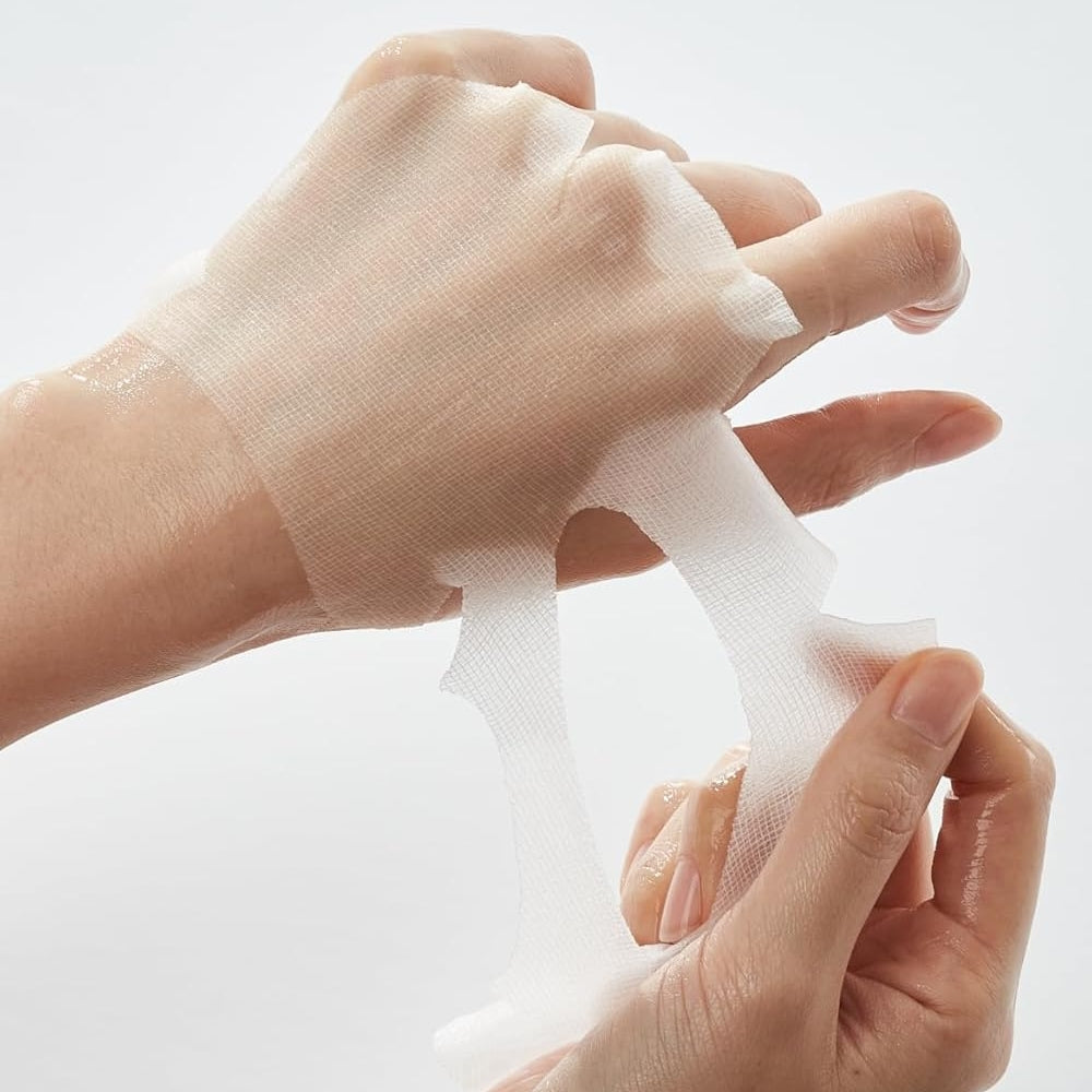 This healing gauze sheet comprises 100% Cotton and Tencel fabric to minimise skin irritation. Its thin, flexible characteristics allow it to comfortably adhere to the curvature of the skin and facilitate absorption of the essence. Suitable for use on sensitive skin. Cruelty-free & vegan-friendly.