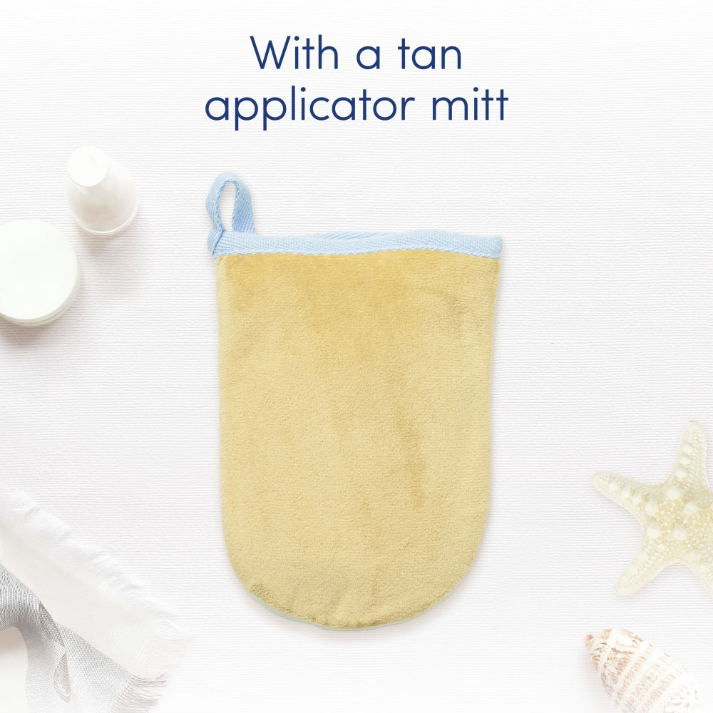 Dove Summer Revived Light to Medium Gradual Tanning Mousse provides 48-hour moisturisation while helping you achieve a sun-kissed appearance without the sunshine. It has a light fragrance of sun-ripened fruits and is made with gentle, naturally derived tanners that work gradually, starting with light colour and darkening as over the days. Its fast-absorbing moisturiser formula helps skin retain hydration and stay silky soft while she builds her streak-free tan. The soft, dual-sided tanning mitt is designed to apply the mousse with ease, leaving the skin seamlessly covered and feeling smooth.