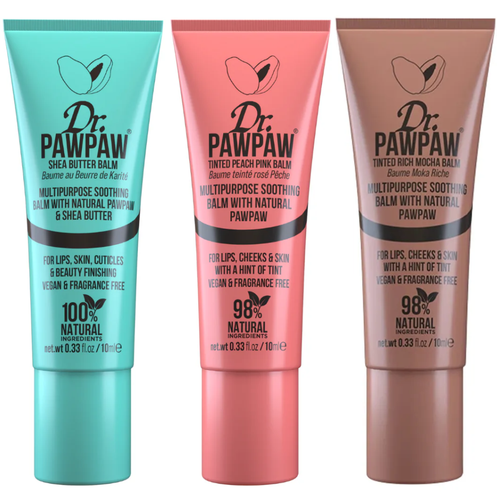 - 1 x Dr. PawPaw Tinted Peach Pink Balm (10ml) - a 98% natural, buildable formula that adds a soft, peachy glow to lips, cheeks, and eyelids.