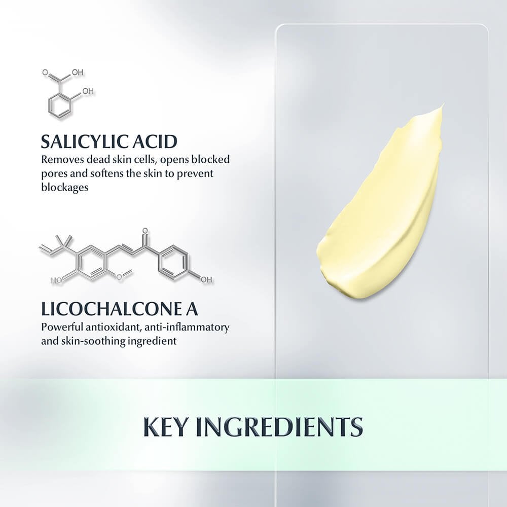 Sebum-regulating technology reduces sebum production, whilst Salicylic Acid and Licochalcone A calm inflammation and reduce redness. Mattifying particles provide an 8-hour, anti-shine effect without clogging the pores. The complexion is left visibly clearer with a long-lasting matt effect. Anti-bacterial, non-comedogenic, non-acnegenic and non-greasy. Cruelty-free.