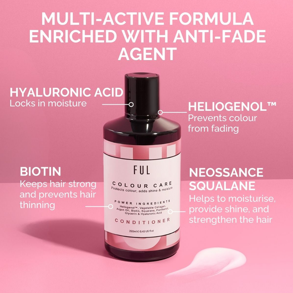 FUL Colour Care Conditioner (250ml) is a multi-active formula which protects colour, adds shine and infuses moisture. Fragranced with a zesty blend of lemon, bergamot, cassis and apple, this shampoo locks in colour and prevents breakage, leaving your hair glossy and healthy-looking.