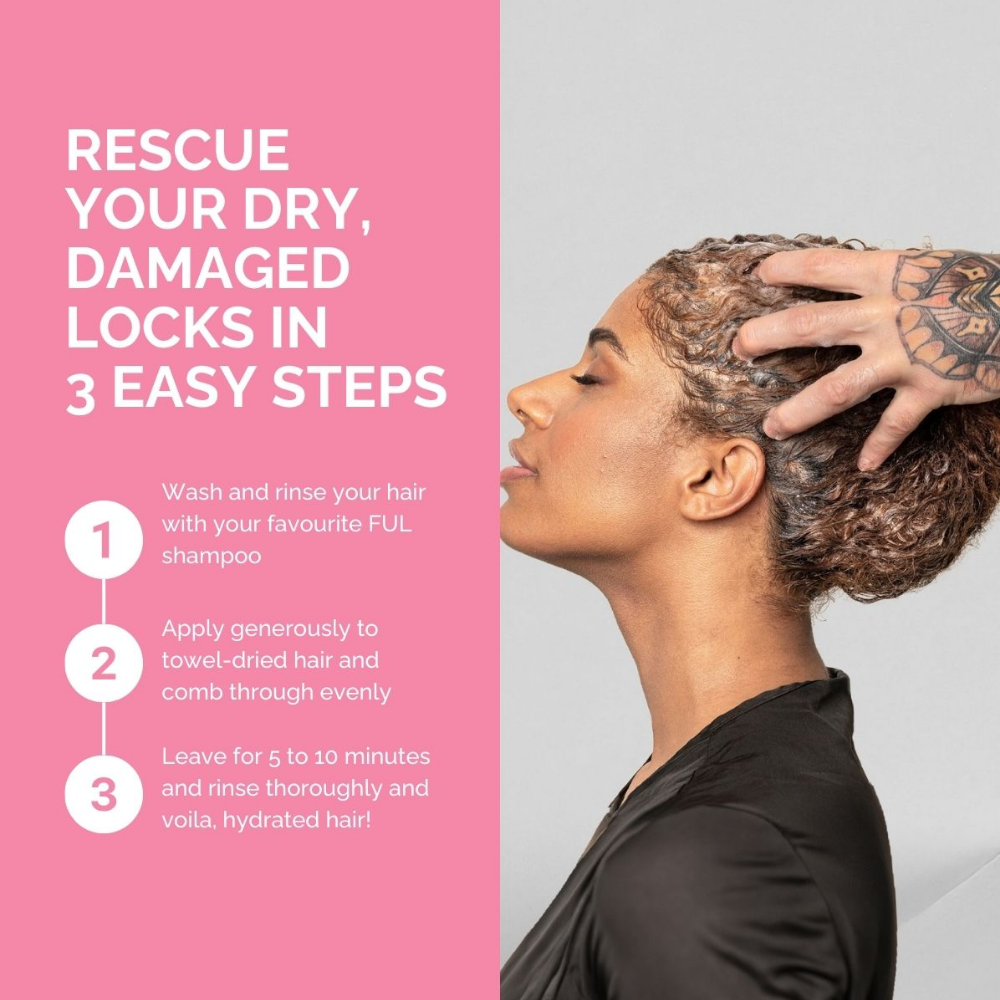 FUL Intense Moisture Hair Mask (300ml) is a 5-in-1 nourishing hydrating hair mask for use on dry and damaged hair. The lightweight, pH-balanced formulation provides deep hydration for all hair types, replenishing dry and damaged hair and leaving it silky soft and visibly moisturised.