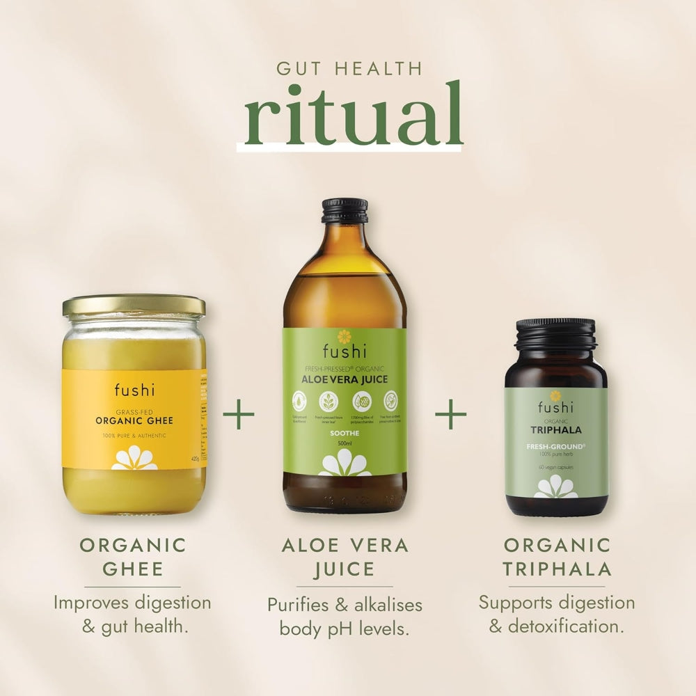 Rich in Vitamins A, E, and K, Ghee provides beneficial fat-soluble vitamins, important nutrients which help to maintain healthy vision and glowing skin. Key nutrient Butyrate, otherwise known as Butyric Acid, is a short-chain fatty acid which has been shown to support gut health. All Fushi products are ethically sourced and organically produced. Cruelty-free & vegan-friendly.