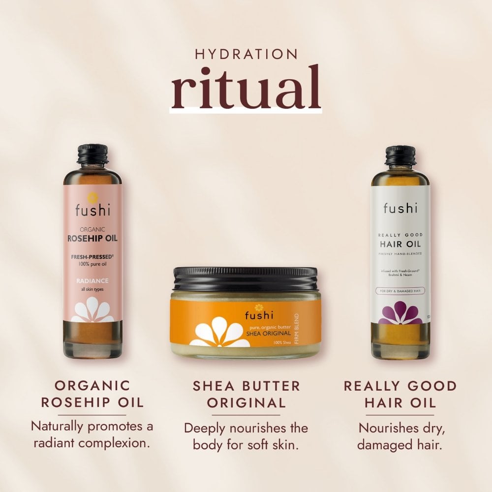 Also enriched with essential Vitamins A, E and F, the moisturising cream protects the skin from harmful UV rays, promotes youthfulness by reducing dryness and fine lines, and helps maintain the overall health of skin and hair. The product can also be used as a cleanser to unclog pores and its anti-bacterial properties can help heal wounds and skin problems. All Fushi products are ethically sourced and organically produced. Cruelty-free & vegan-friendly.