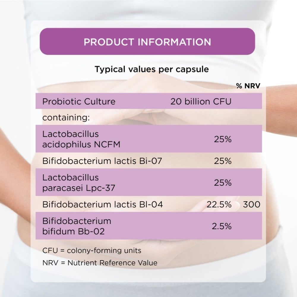Super20 Pro is lactose-free, making it suitable for 65% of adults worldwide who have a reduced ability to digest products containing cow's milk. What is more, these tough live bacteria strains have a long shelf life and do not need to be stored in the fridge. Gelatine-free. Suitable for vegan and vegetarian diets.