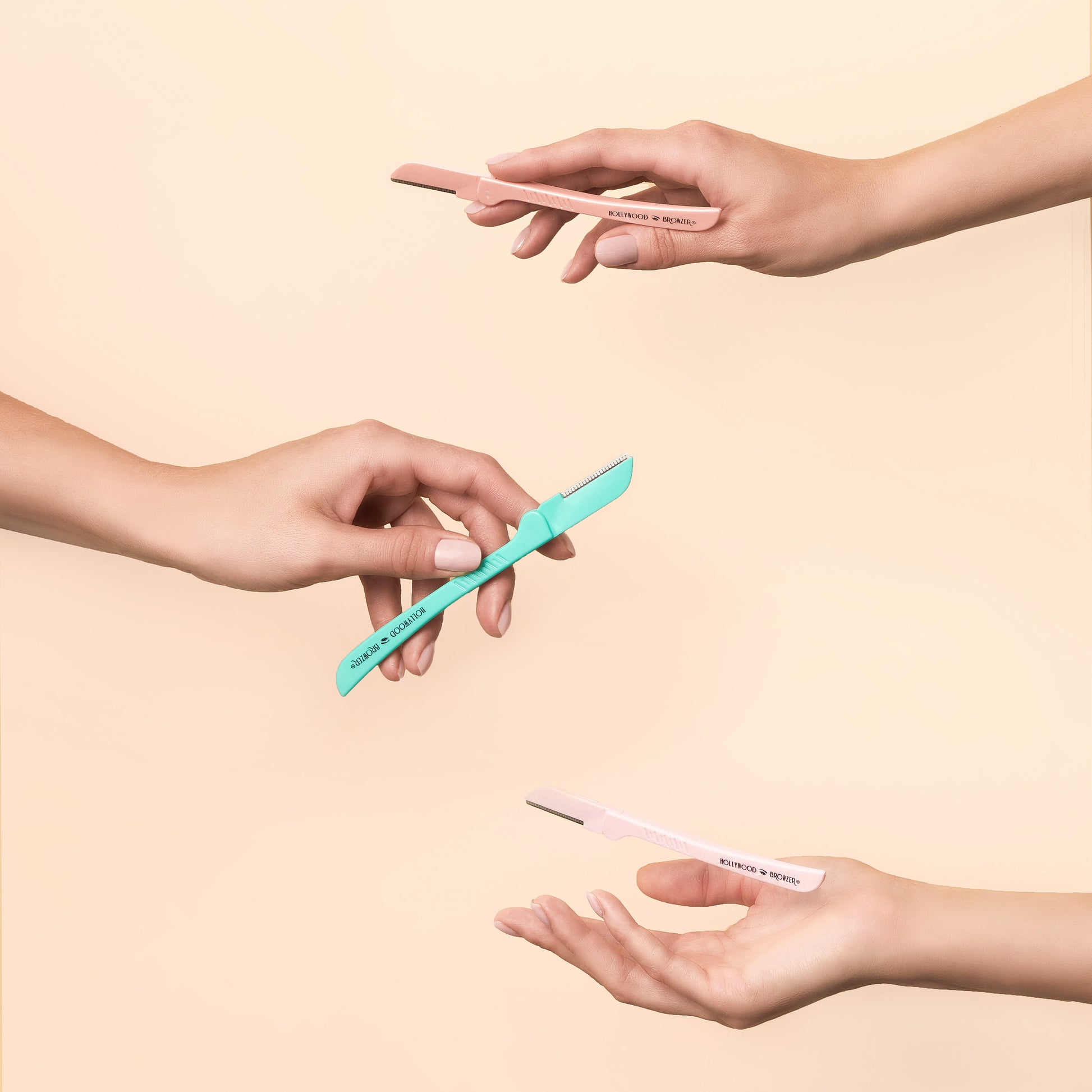 Hollywood Browzer Duo Browzer Hair Removal & Dermaplaning Tool Blue + Rose offers a gentle at-home dermaplaning solution for effective facial hair removal and skin exfoliation, featuring a precision tool that doubles as a brow shaping device for perfectly groomed eyebrows.