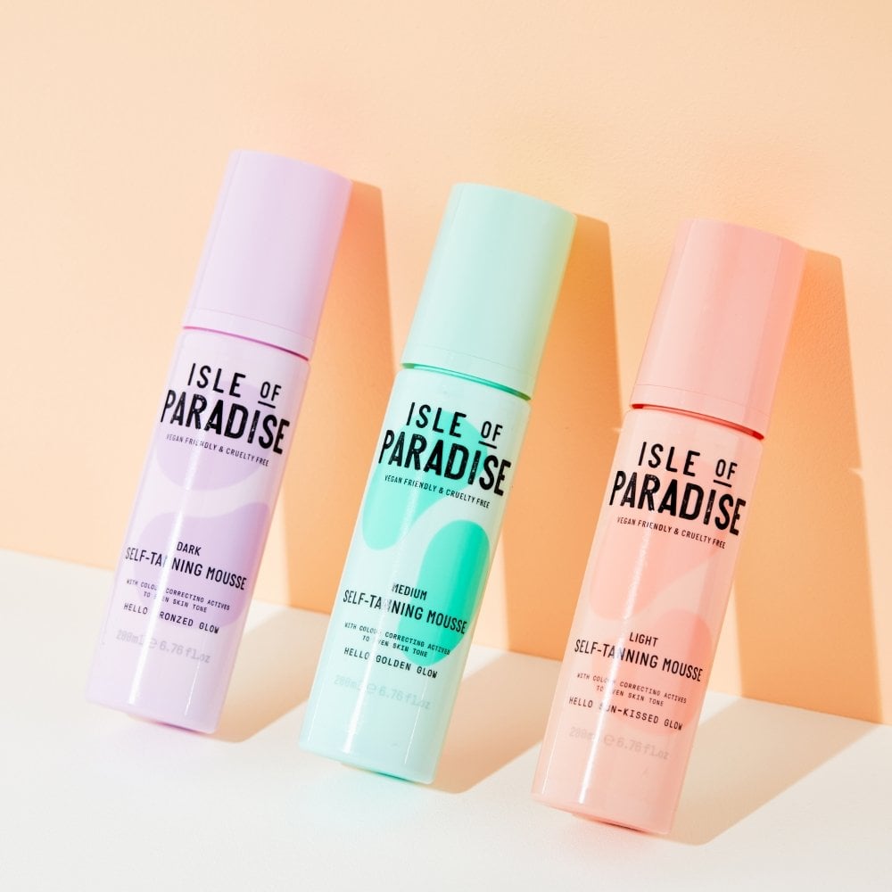 Isle Of Paradise Self-Tanning Mousse Light (200ml) is a lightweight, hydrating foam formula with colour-correcting actives and plant-based ingredients.