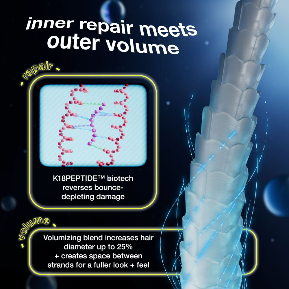 K18 Biomimetic Hairscience AstroLift Reparative Volume Spray (118ml) is a biotech-powered volumising spray designed to deliver lasting lift while repairing damage that depletes bounce and fullness. Infused with the patented K18PEPTIDE™, it works at a molecular level to restore strength and resilience to fragile, ageing or breakage-prone hair. This innovative spray provides up to 2 days of soft, flexible volume, thickening hair fibres by up to 25% for a fuller, healthier-looking finish from root to tip, without stiffness or stickiness.