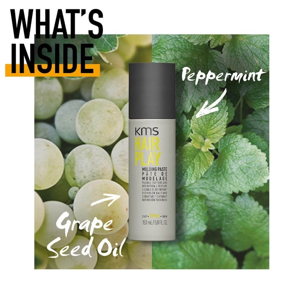 This paste has been formulated with KMS's Innovative Shaping Blend which includes PVP setting Polymer to provide support and hold, Carnauba Wax to help provide hold and texture, Grape Seed Oil, rich in Vitamin E, to naturally seal moisture into the hair, and antioxidant Peppermint to combat free radicals and provide environmental protection. This paste exudes a light, radiant and refreshing fragrance, combining the scent of Tonka Tree, Almonds, Pineapples and Vanilla. Cruelty-free.
