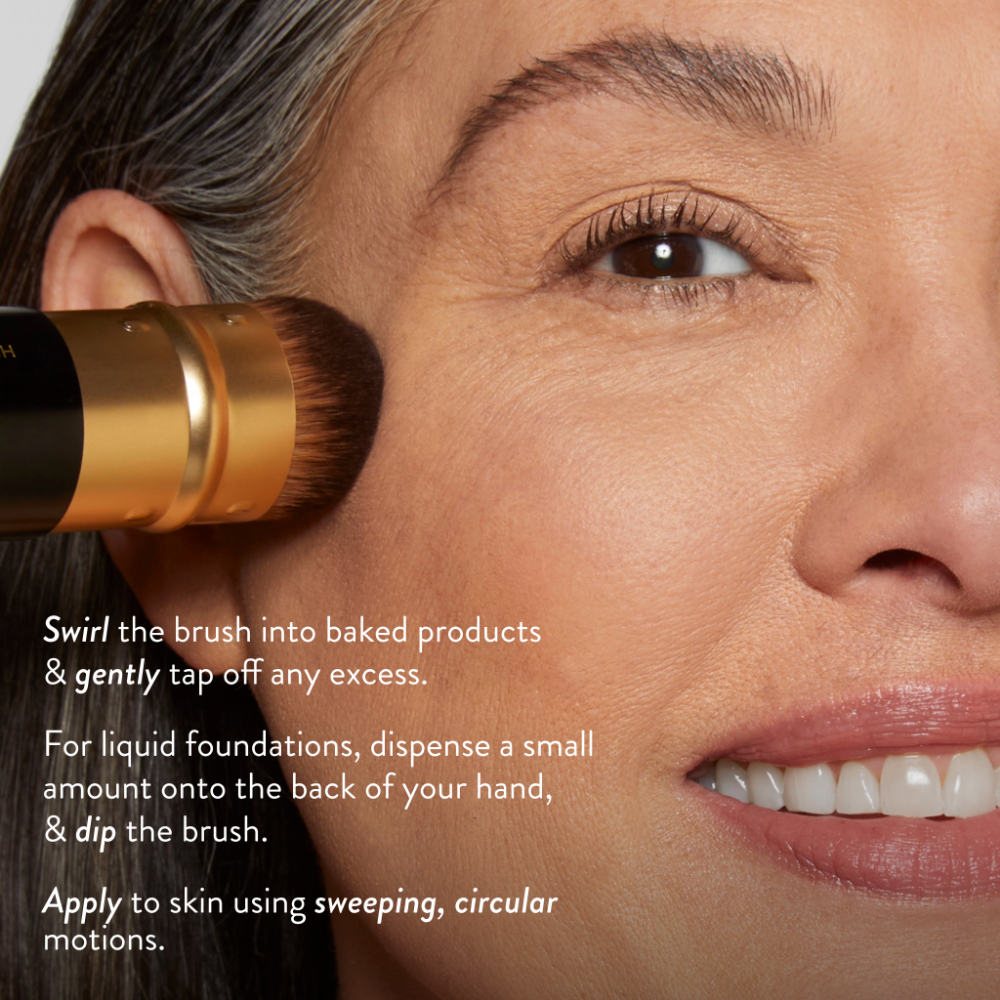 Its innovative retractable sleeve allows for two customised methods of application: push the sleeve down for light, all-over blending, or slide it up for targeted, buildable coverage using gentle patting motions. Perfect for at-home use or on-the-go touch-ups, this versatile brush is essential for achieving professional-quality results. Dermatologist approved. Cruelty-free & vegan-friendly.