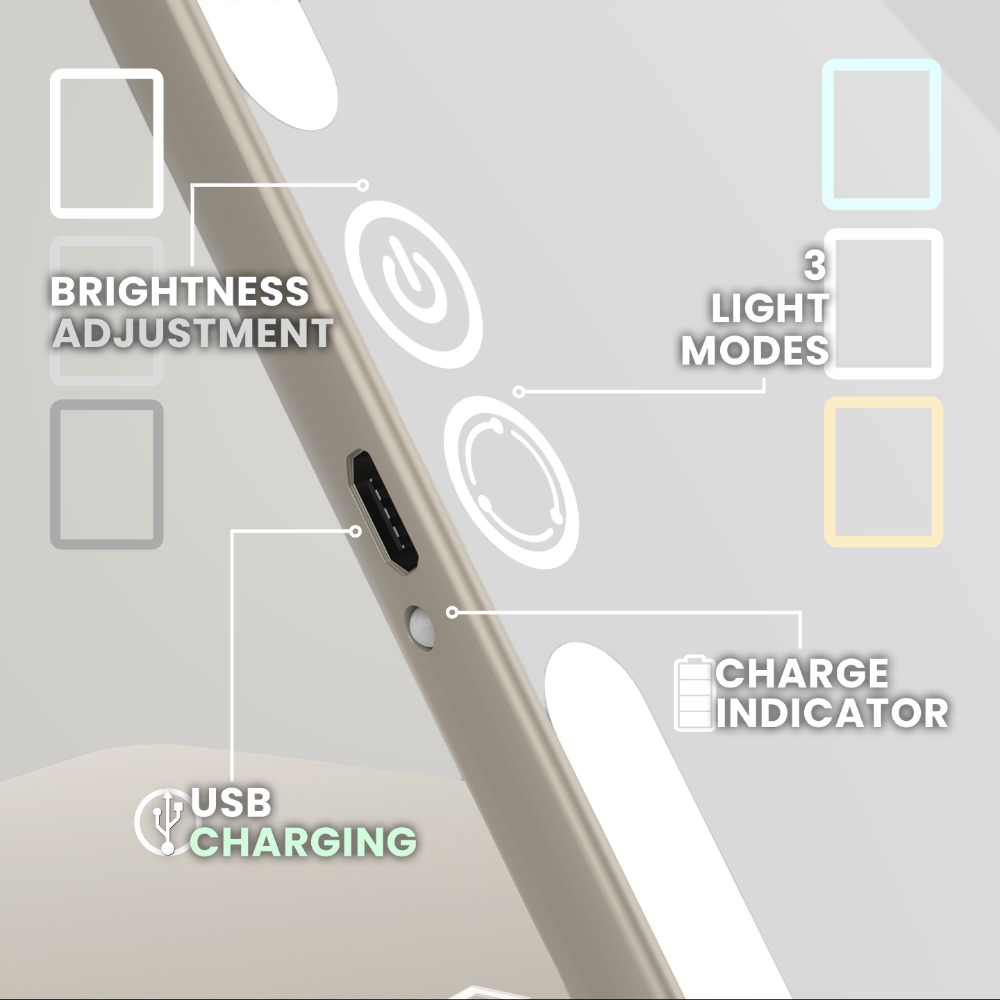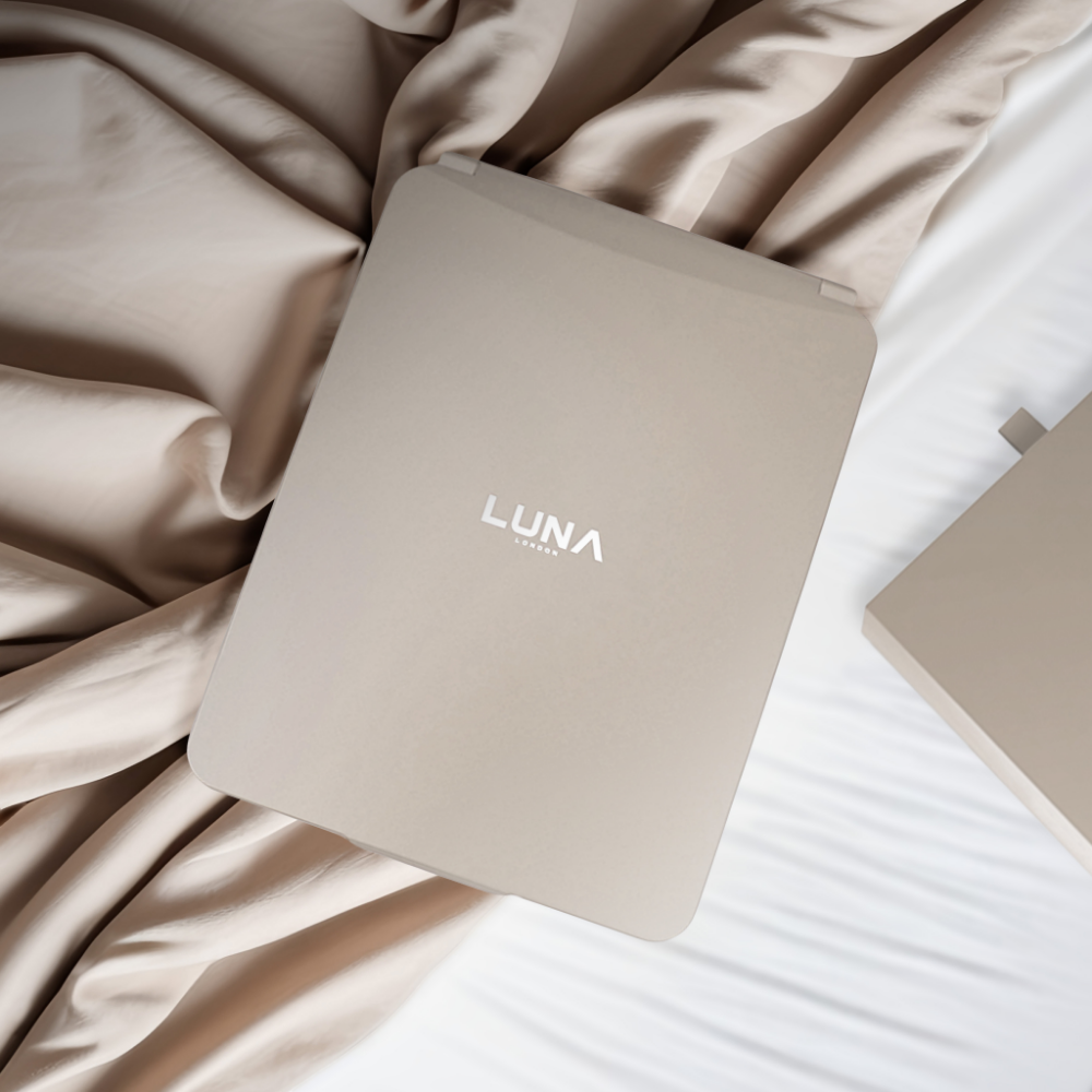 Luna London Eclipse Travel Mirror Soft Stone is a slim, portable illuminated makeup mirror that seamlessly moves from your home vanity to life on the go. Designed to fold flat and slip easily into a handbag, backpack or suitcase, it is perfect for everything from early-morning commutes to evenings away. It's built-in ring light features three adjustable colour modes - warm, neutral and natural daylight - so you can enjoy consistent, flattering lighting wherever you are. Crafted with a tablet-like shape and ultra-slim profile, this stylish travel companion eliminates the struggle of poor hotel lighting, helping you achieve flawless makeup and grooming routines at any time.