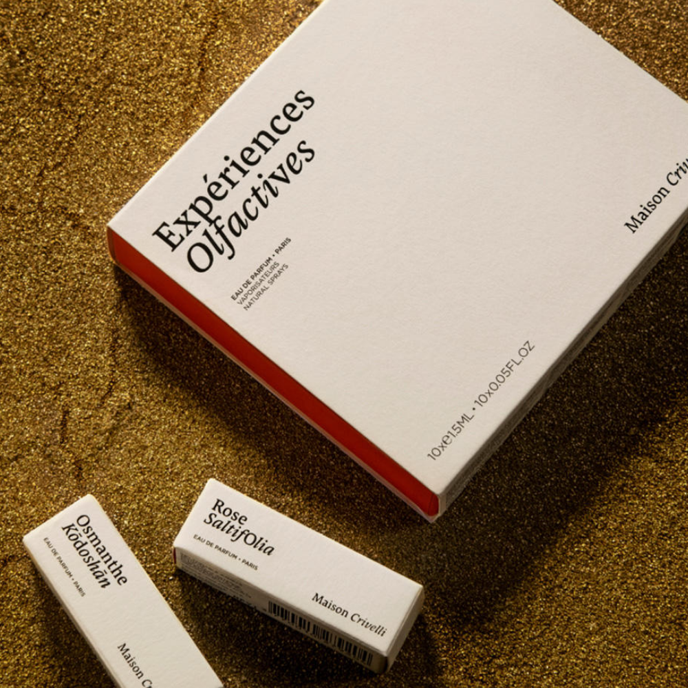 Maison Crivelli Eau De Parfum Discovery Set (10 x 1.5ml) is a curated collection of ten eau de parfums designed to immerse the wearer in the brand's signature world of surprising contrasts and experiential fragrance journeys.
