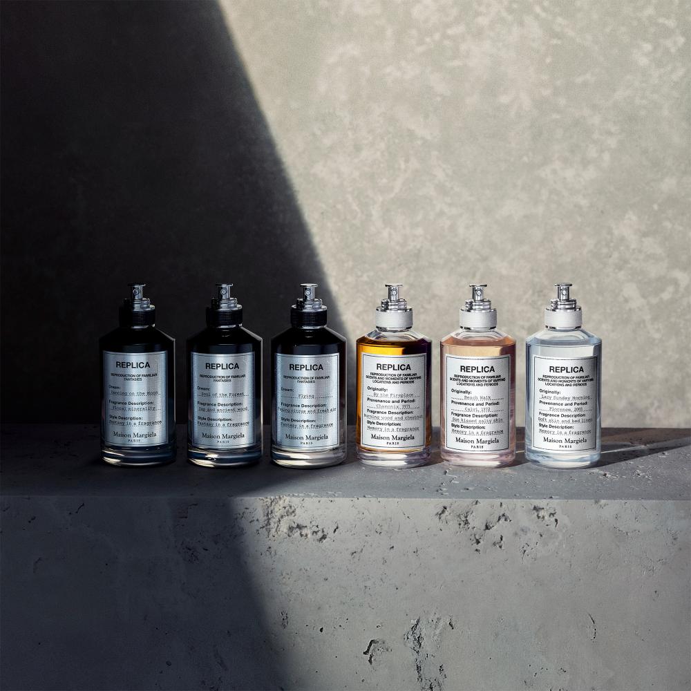 Maison Margiela's Replica collection of unique scents have been deliberately concocted to recall personally cherished memories, reawakening and reliving the emotions involved. Reflecting a minimalistic approach, the Replica bottle is simple in design with a cotton label bearing the fragrance's name.