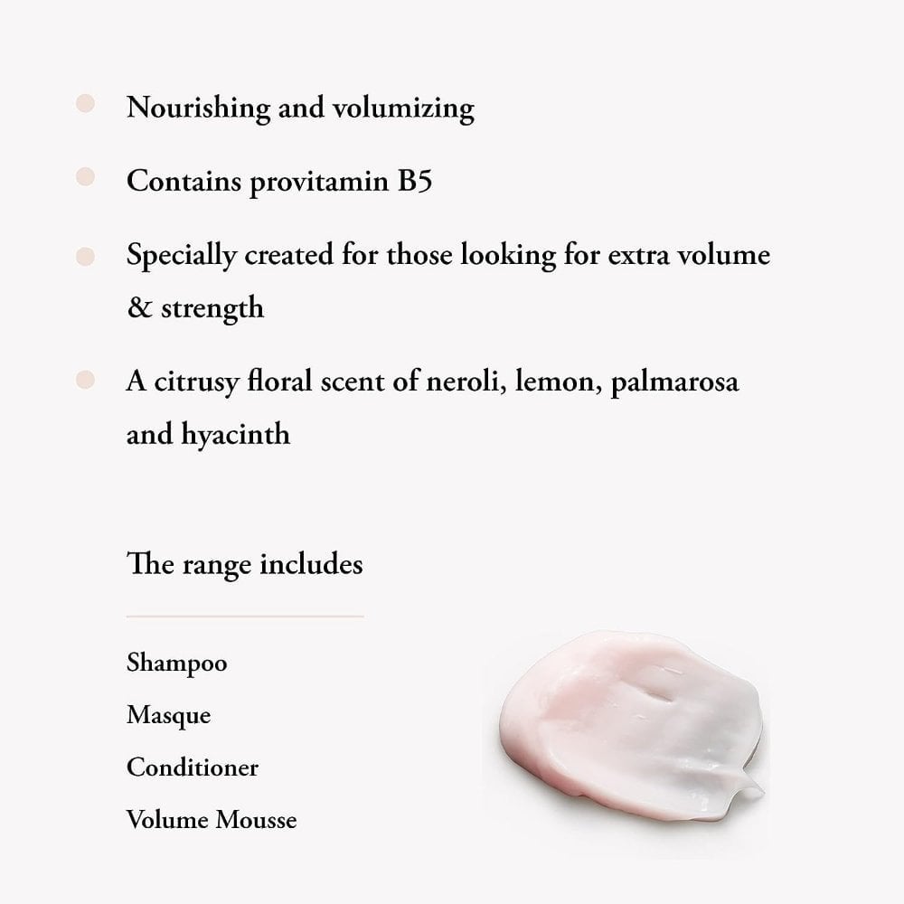 - Shampoo - apply the Pure Volume Shampoo to wet hair and scalp. Massage from root to tip to release the lather. Rinse thoroughly and follow with a mask. Finish off with a conditioner for optimal results. For that extra volume, use this shampoo in conjunction with the mask and conditioner from the Pure Volume series. These products are suitable for daily use to maintain voluminous, vibrant, and resilient hair.