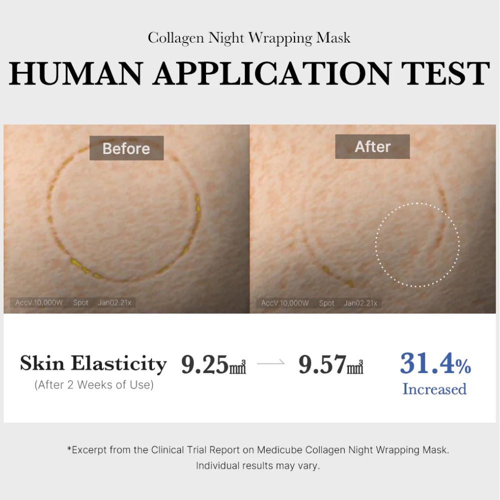 Medicube Collagen Night Wrapping Mask (75ml) is an innovative sleeping mask which has been infused with Medicube's exclusive Triple Collagen Complex, featuring Hyaluronic Collagen, Low molecular Collagen and soluble Collagen to work its magic while you sleep. These powerful ingredients restore elasticity, boost plumpness and lock in moisture, revealing smoother, more youthful skin with a radiant, glass-like glow.