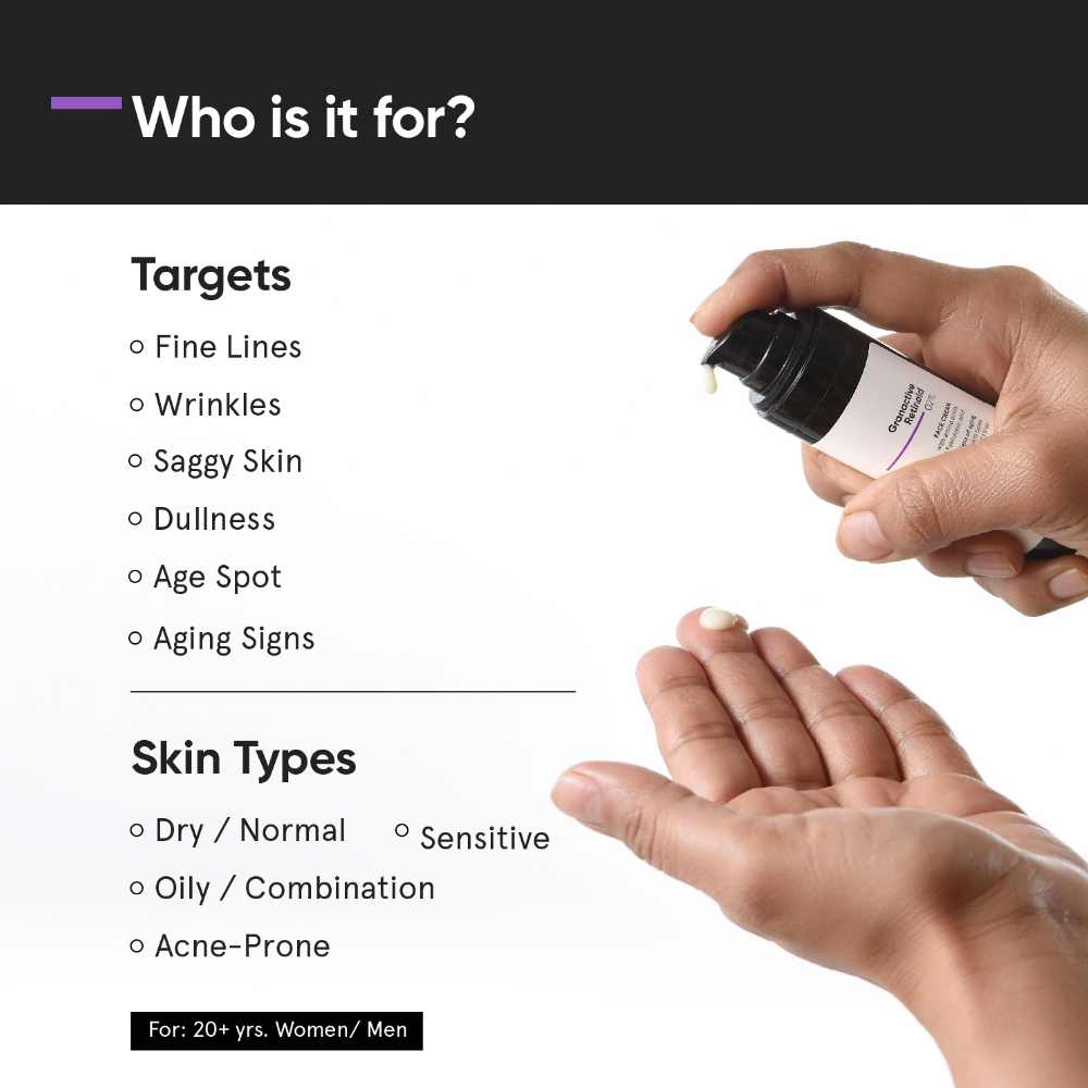 Powered by Granactive Retinoid, an advanced, non-irritating form of Vitamin A, it works to boost cell turnover, stimulate Collagen production and reverse signs of UV damage for a smoother, more youthful complexion. Enriched with 17 amino acids and Hyaluronic Acid, it also helps restore the skin barrier, improve hydration and support overall skin health. With a skin-friendly pH of 5.0-6.0, this cream delivers visible results with minimal irritation. Non-comedogenic, fragrance-free and essential oil-free. Cruelty-free.