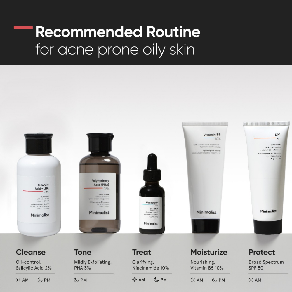 Minimalist Salicylic + LHA 02% Face Cleanser (100ml) is a gentle exfoliating cleanser formulated to clear acne, control excess oil and refine skin texture without over-drying.