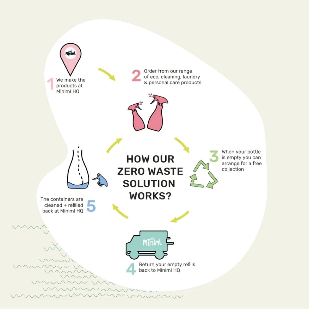 Once you have finished with your empty packaging, you can send it back to Miniml free of charge by scanning the QR code on the back of the packaging or the information card in your order so that it can be cleaned, reused and refilled. This means that there is absolutely no single use plastic going to waste!