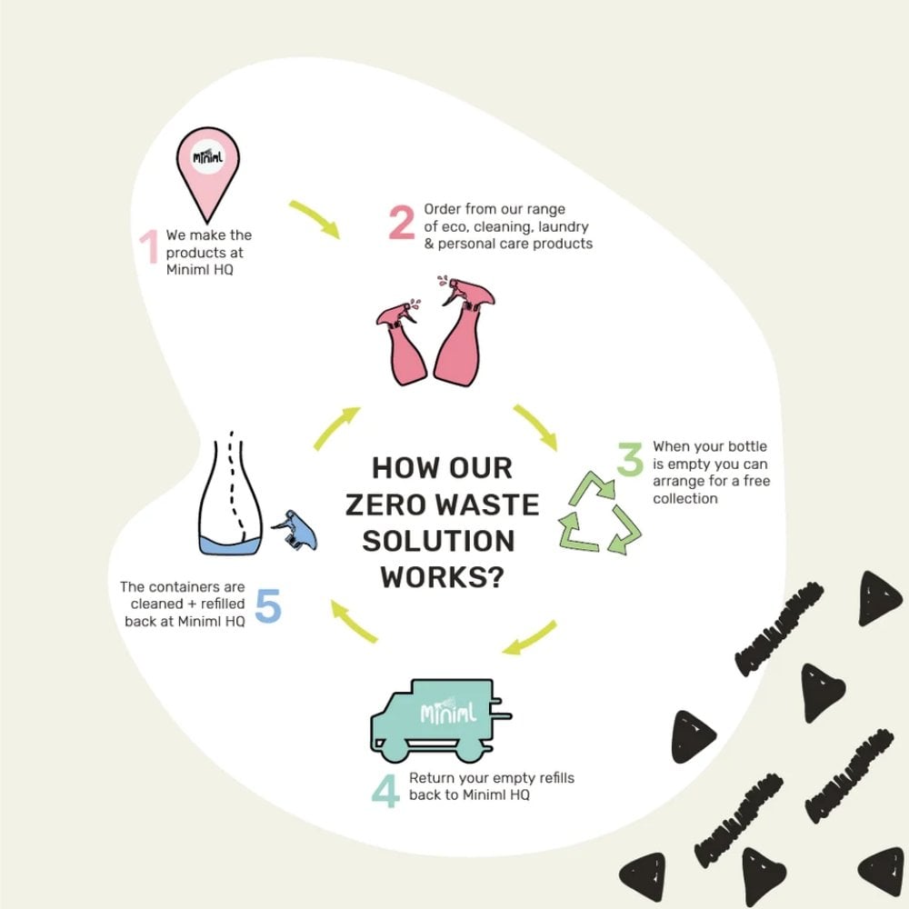 Once you have finished with your empty packaging, you can send it back to Miniml free of charge by scanning the QR code on the back of the packaging or the information card in your order so that it can be cleaned, reused and refilled. This means that there is absolutely no single use plastic going to waste!