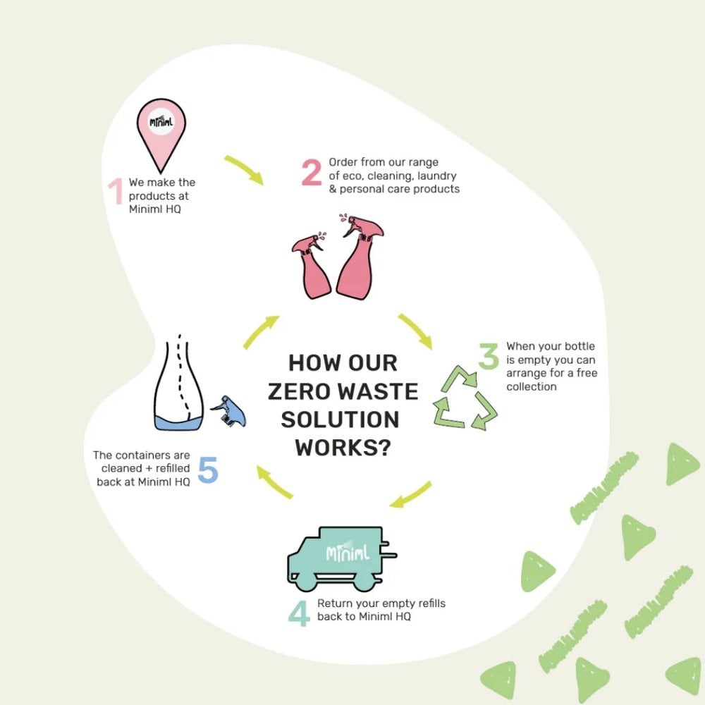 Once you have finished with your empty packaging, you can send it back to Miniml free of charge by scanning the QR code on the back of the packaging or the information card in your order so that it can be cleaned, reused and refilled. This means that there is absolutely no single use plastic going to waste!