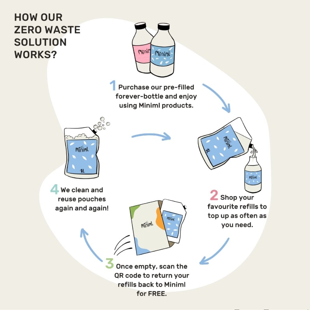 Once you have finished with your empty packaging, you can send it back to Miniml free of charge by scanning the QR code on the back of the packaging or the information card in your order so that it can be cleaned, reused and refilled. This means that there is absolutely no single use plastic going to waste!