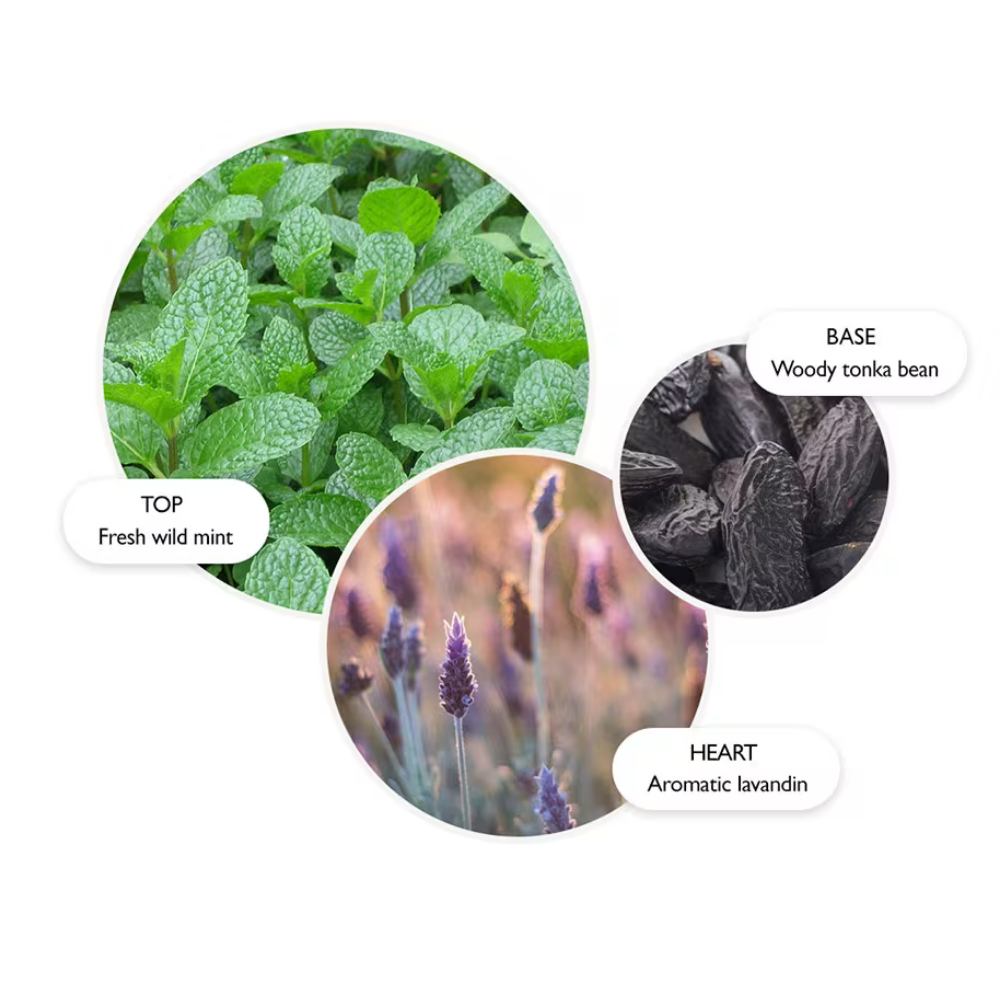 The fragrance opens with the invigorating freshness of Wild Mint, its crisp, tonic qualities enhanced by the distinctive, more intense Lavandin from Provence. As the scent develops, the sensuous touch of Orris Root introduces a contemporary flair, while the fragrance settles into a deep, warm base of Tonka Bean. The experience evokes the rush of a crystal-clear, cool forest stream, where fresh Mint fills the air, soothing yet stimulating. Warm Orris Root and creamy Nutmeg create a refined grounding, making this fragrance a perfect balance of nature's wildness and sophisticated allure. Cruelty-free & vegan-friendly.
