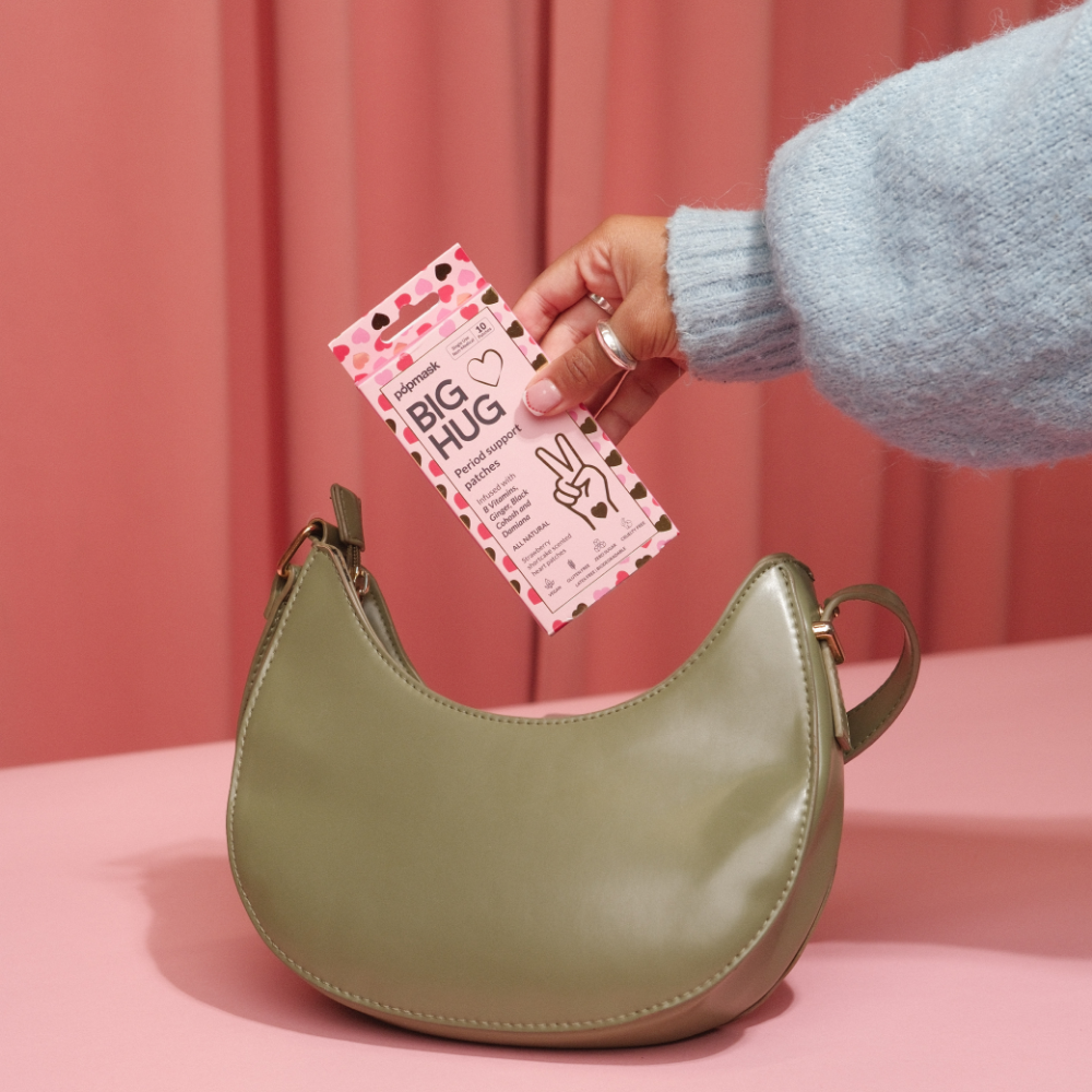 Popmask Big Hug Vitamin Period Support Patches (x10) are heart-shaped patches which have been designed to effectively support your menstrual health while adding a touch of charm to your routine. Each patch is infused with a powerful blend of B vitamins, Ginger, Black Cohosh and Damiana, carefully selected to help you tackle cramps, mood swings, and fatigue. These natural ingredients work in harmony to provide ultimate relief so you can embrace your cycle with confidence. A delightfully sweet Strawberry aroma soothes your senses as you wear the patch.