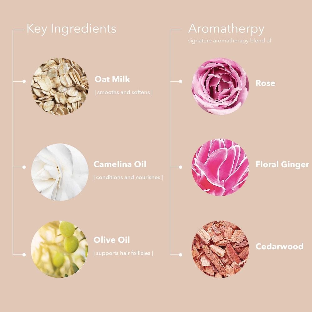- Wait 5-10 minutes. Rinse thoroughly. Key ingredients Oat Milk and Camellia Oil condition, soften and lock in shine, so use of a conditioner or mask is optional.